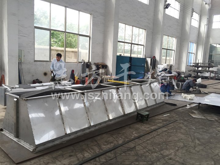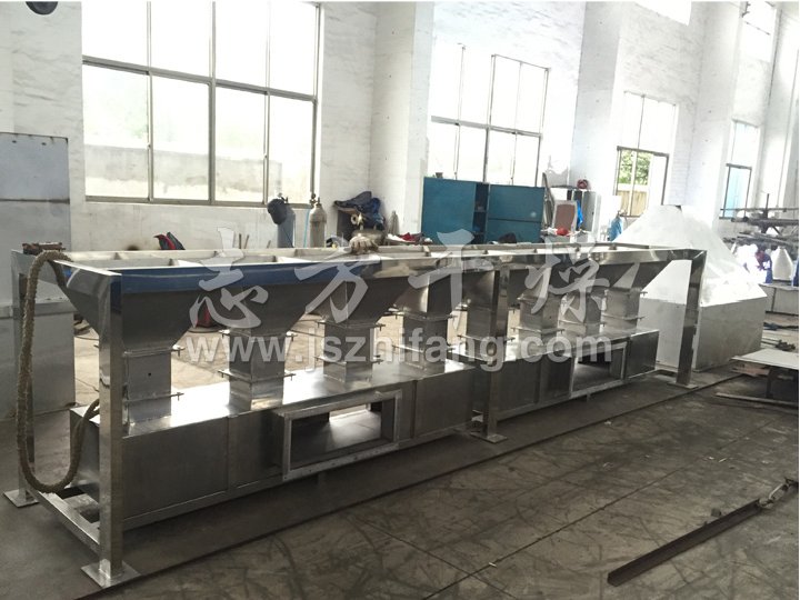 潔凈的熱風(fēng)經(jīng)閥板分配進(jìn)入床體內(nèi),從加料器進(jìn)入的濕物料被熱風(fēng)形成沸騰狀態(tài)。由于熱風(fēng)與物料廣泛接觸,增強(qiáng)了傳熱傳質(zhì)的過(guò)程,因此在較短時(shí)間內(nèi)就可干燥。如用連續(xù)型,物料從床體的一頭進(jìn)入,經(jīng)過(guò)幾十秒至幾分鐘沸騰干燥,自動(dòng)從床體另一頭流出。本設(shè)備一般進(jìn)行負(fù)壓操作。