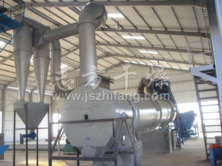 濕物料從干燥機一端投入后,在內筒均布的抄板器翻動下,物料在干燥器內均勻分布與分散,并與并流(逆流)的熱空氣充分接觸,加快了干燥傳熱,傳至推動力。在干燥過程中,物料在帶有傾斜度的抄板和熱氣流的作用下,可調控地運動至干燥機另一段星形卸料閥排出成品。