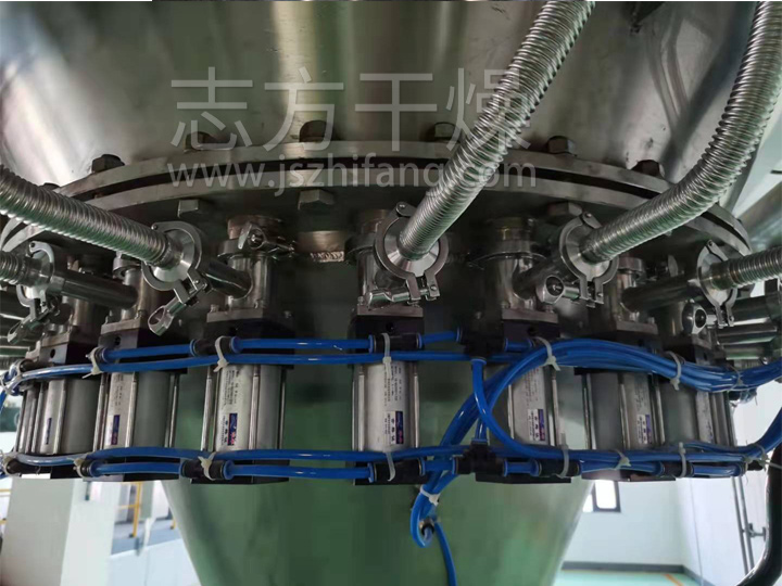 如混合一批物料通常需要幾個脈沖,每個脈沖周期供氣(混合)時間數秒,間隔時間為數秒(停氣),一批物料經過若干個脈沖即可實現快速均勻混合操作(混合過程通過PLC可編程序,可實現手動或自控操作,供氣混合時間和停氣停留時間的長短及脈沖次數均由業主確定)。